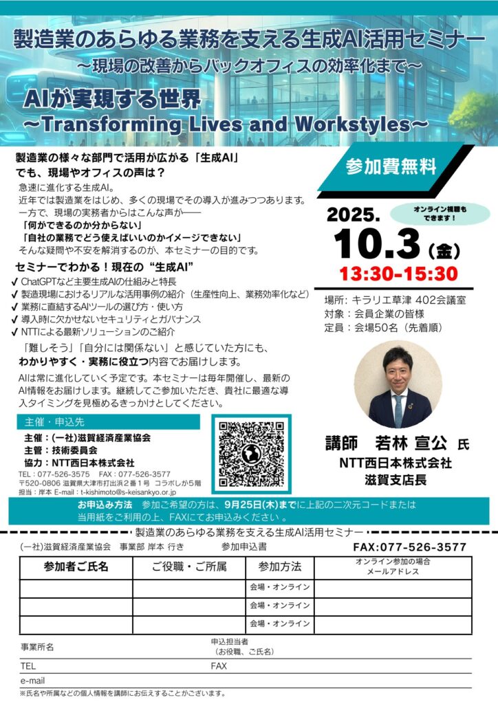 講師 | NTT西日本株式会社 滋賀支店長 若林 宣公 氏 |